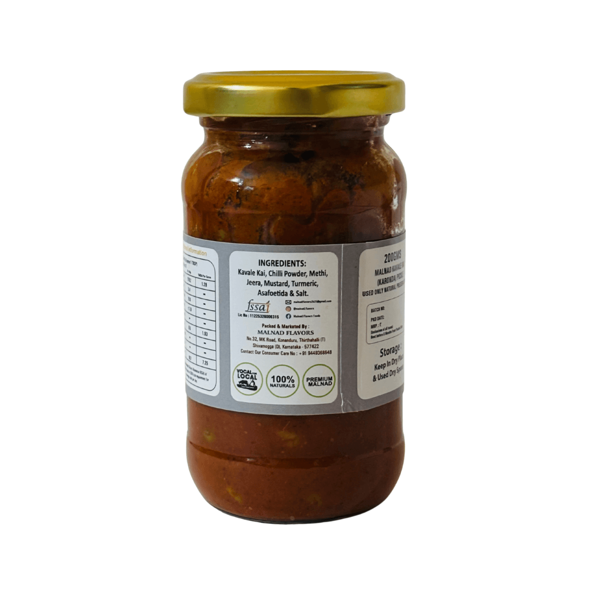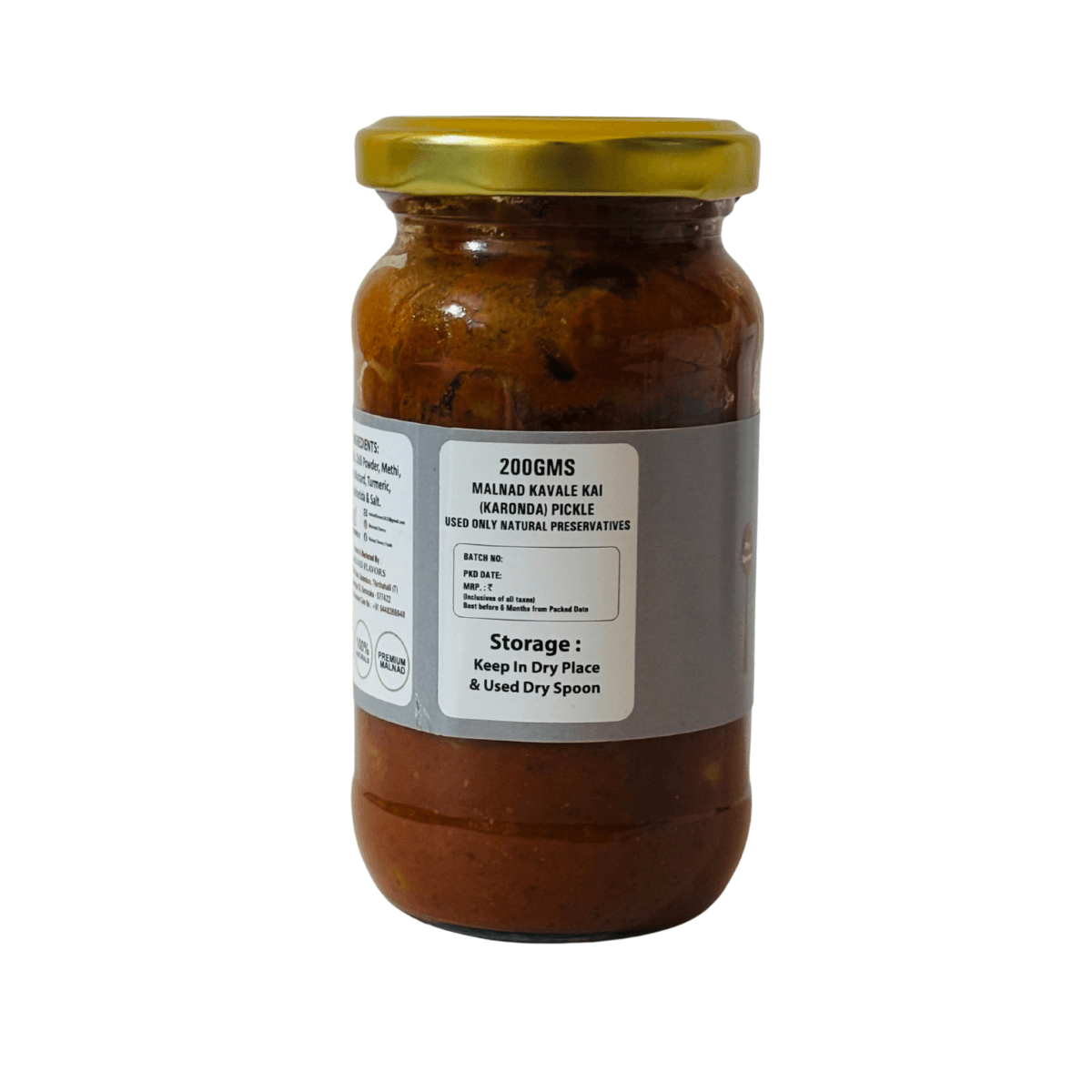 Malnad Kavale Kai (Karonda) Pickle | Tender Kavale Kai Pickle | 100% Pure & Natural | Glass Jar | 200gm
