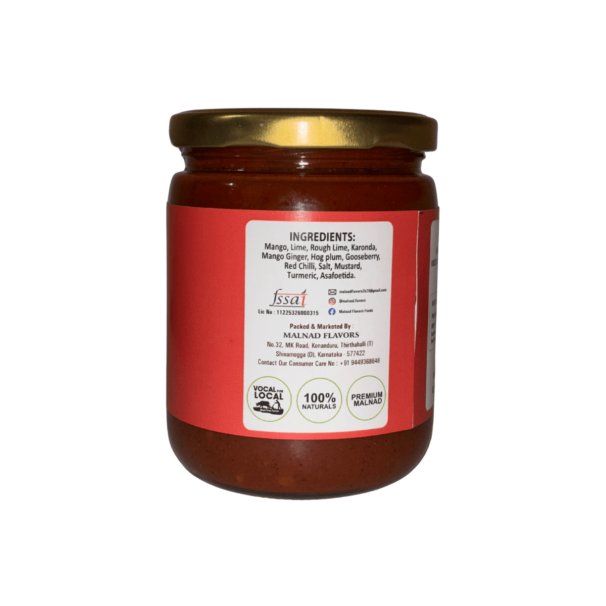 Ingredeints : Mango, Lime, Rough Lime, Karonda, Mango Ginger, Hog plum, Gooseberry, Red Chilli, Salt, Mustard, Turmeric, Asafoetida.
